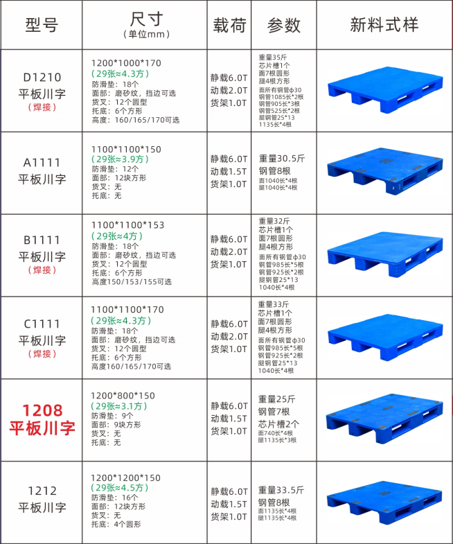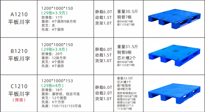 平板塑料托盘:是根据托盘的表面形状对其称呼的,托盘的表面为平板状,故此称为平面塑料托盘。平板塑料托盘在医药、方便食品、造纸和面粉等多种行业中都有广泛应用,并且其中部分平板塑料托盘的内部可内置钢管,达到增强承载的效果。